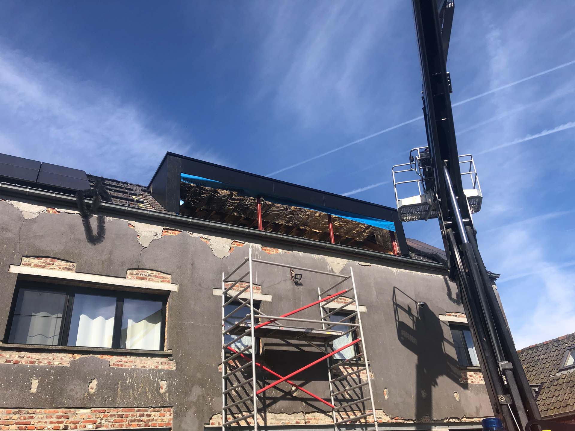 Voor deze woning in Brakel realiseerde GLA Projecten een volledige inrichting van de zolder, inclusief uitbraak van het dak en het plaatsen van een staalconstructie. De uitbreiding werd opgebouwd in houtskelet, voorzien van isolatie en dakdichting, en afgewerkt met duurzame volkern gevelbekleding. Binnenin werden gyprocwerken en binnendeuren geplaatst, wat resulteerde in een comfortabele en perfect afgewerkte leefruimte.