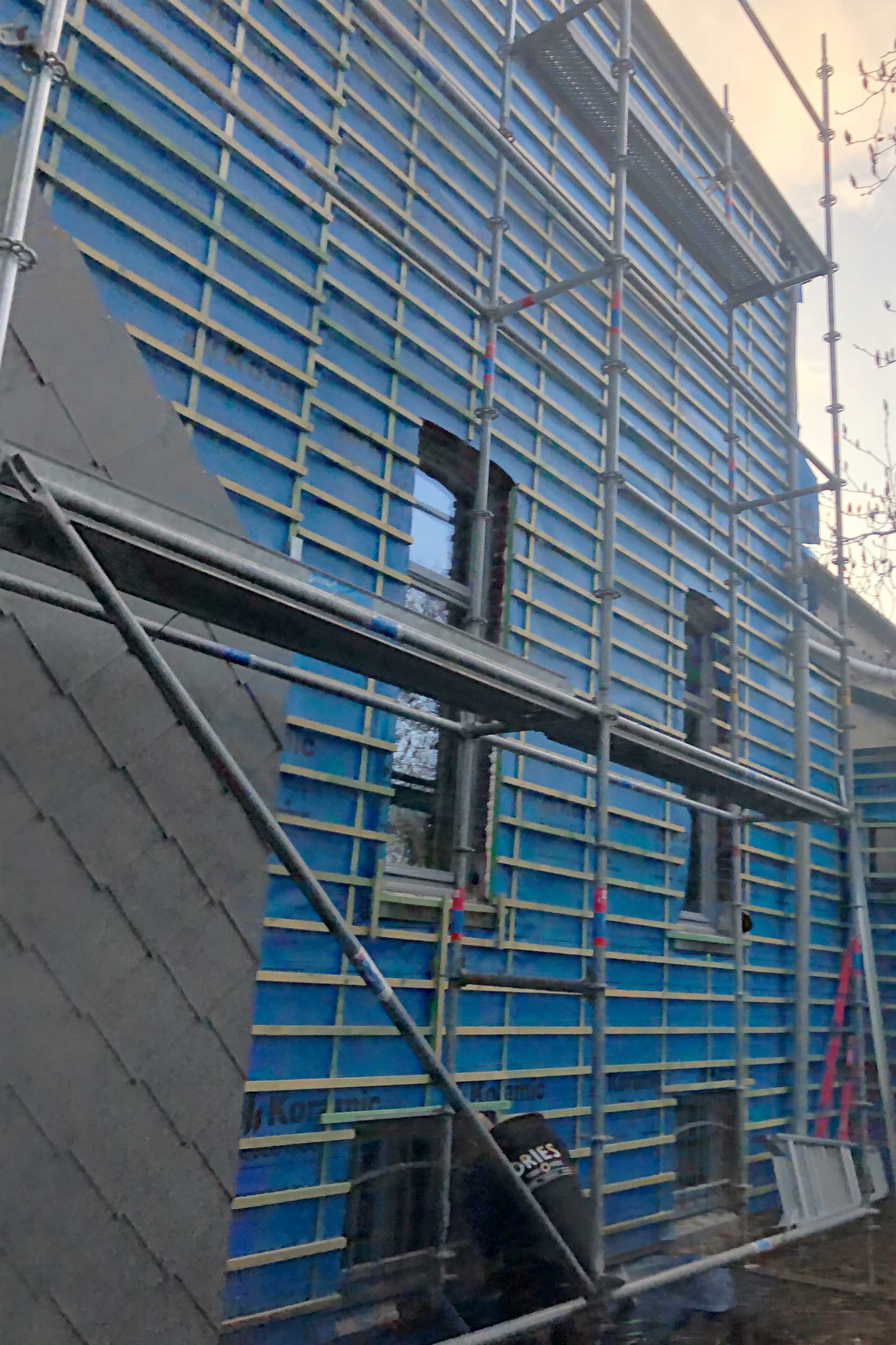 Voor dit project in Wortegem realiseerde GLA Projecten een volledige gevelbekleding met leien, gecombineerd met isolatie en een hoogwaardige gevelfolie. Deze aanpak zorgt niet alleen voor een strakke en tijdloze uitstraling, maar ook voor een verbeterde energieprestatie en duurzame bescherming van de woning. Het resultaat is een technisch sterke gevelafwerking met oog voor detail en lange levensduur.