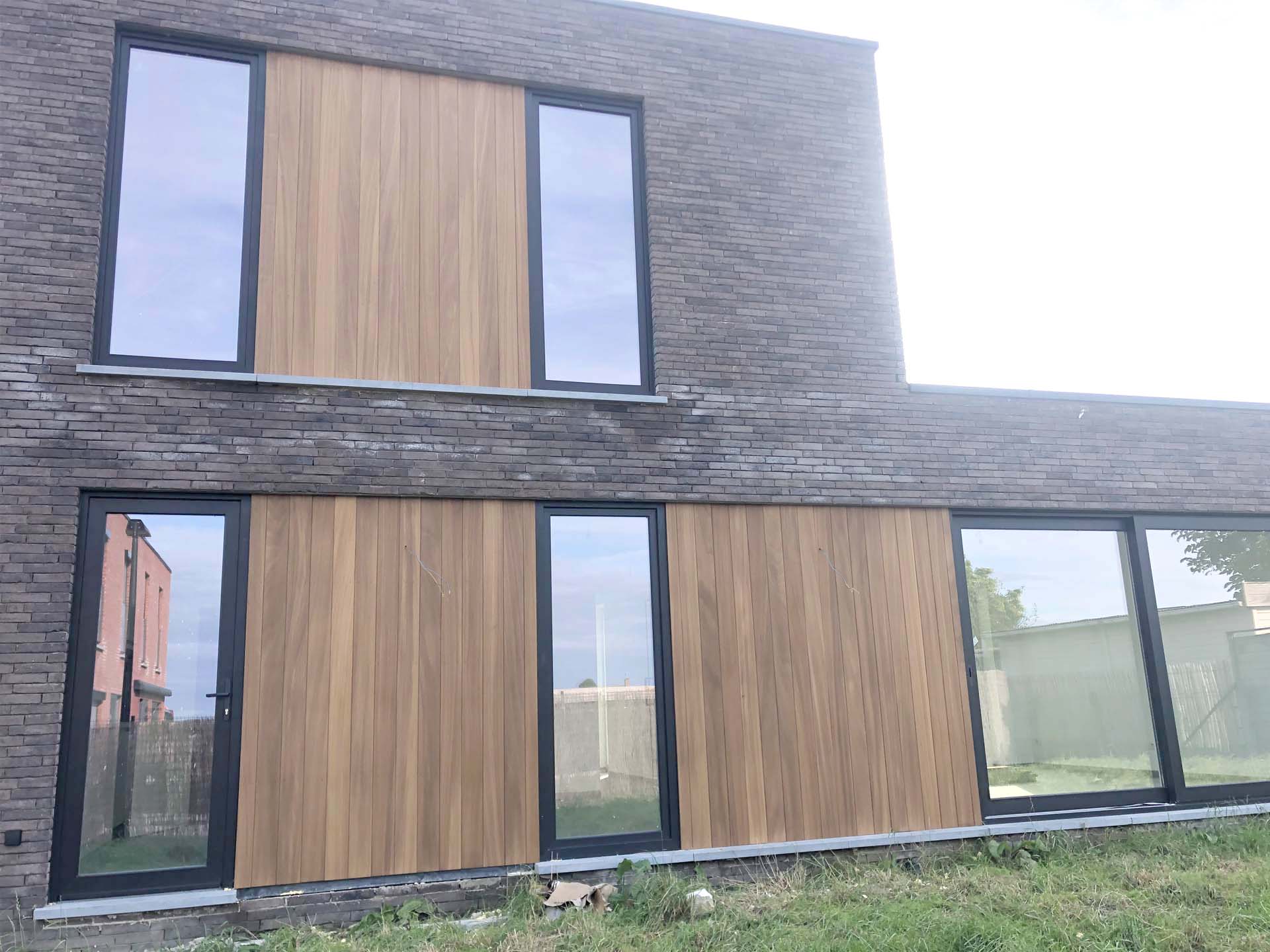 Voor dit project te Ruien werd Thermo Ayous gevelbekleding gebruikt. Thermo ayous is een thermisch behandelde houtsoort. Een mooie, duurzame en ecologisch verantwoorde houtsoort met een lange levensduur.