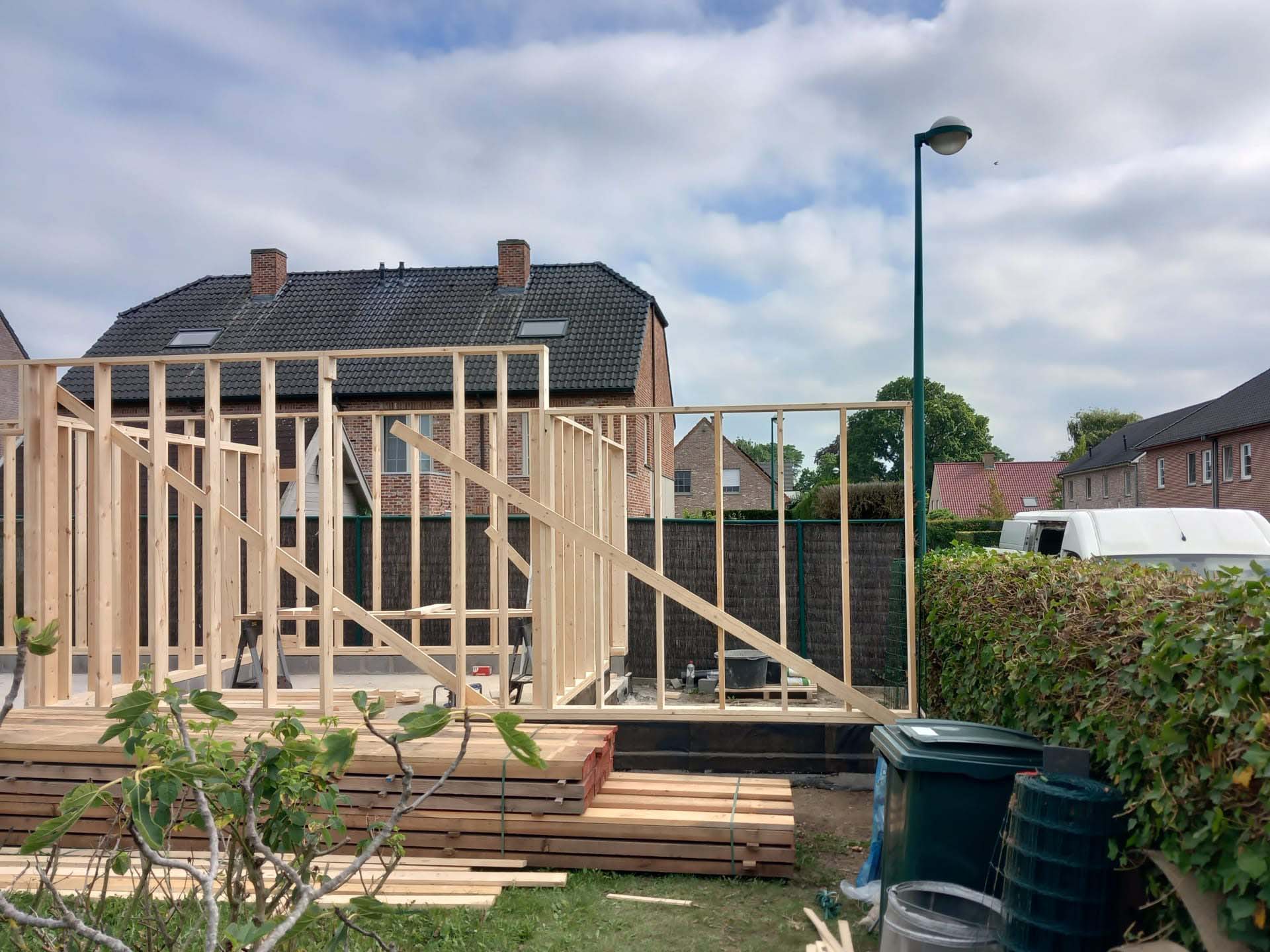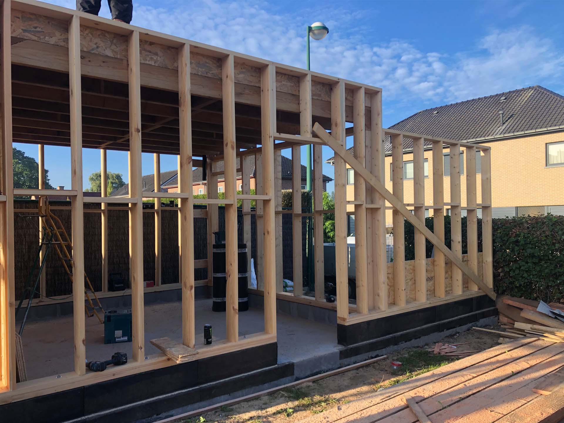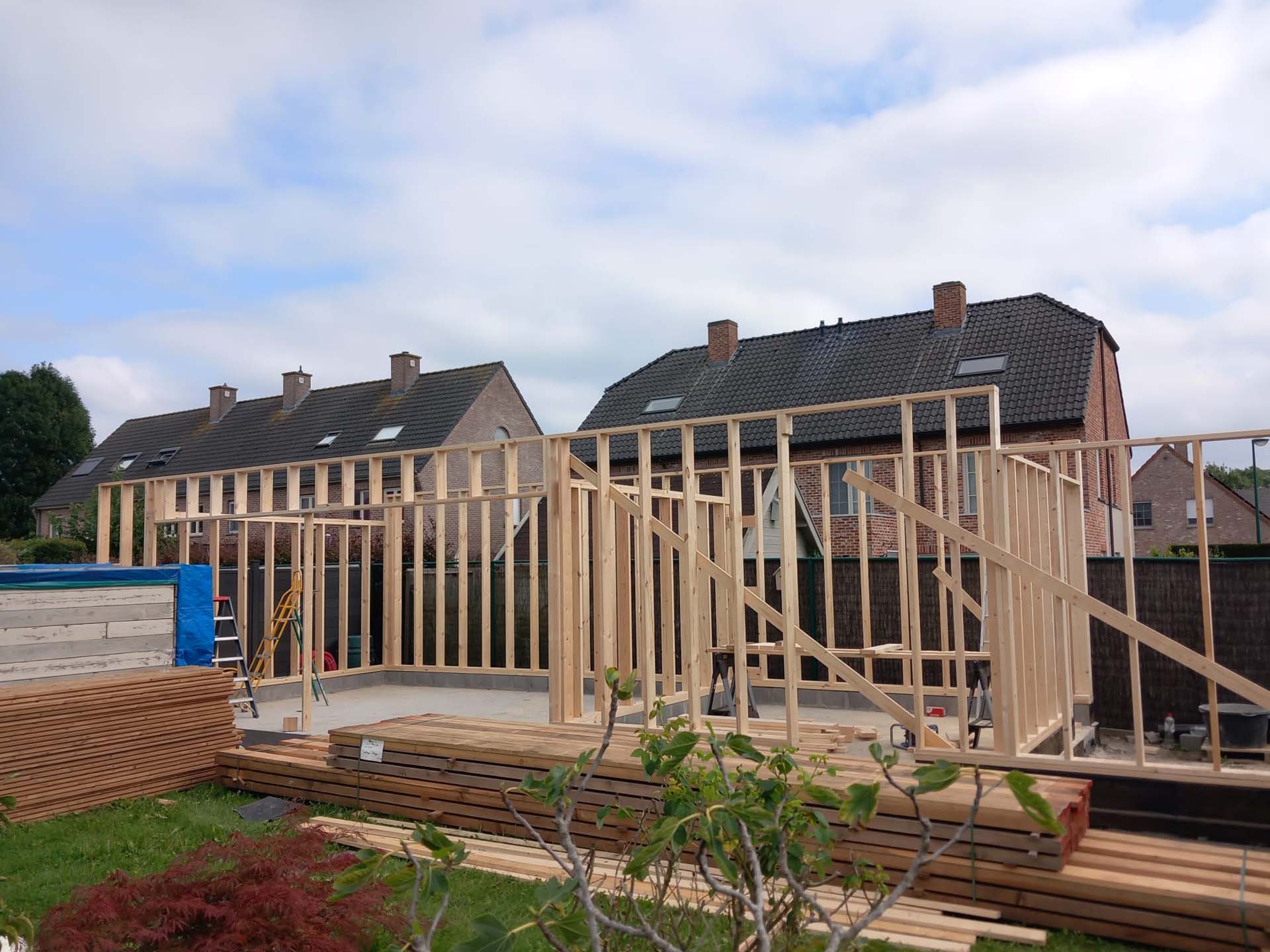 Voor dit tuingebouw in Petegem nam GLA Projecten het volledige traject voor zijn rekening: van het graafwerk en het storten van de betonplaat tot de houtskelet opbouw. De gevel werd afgewerkt met duurzame afrormosia gevelbekleding, wat het gebouw een warme en natuurlijke uitstraling geeft. Dankzij de combinatie van maatwerk constructie en hoogwaardige materialen ontstond een tuingebouw dat zowel functioneel als esthetisch volledig voldoet aan de wensen van de klant.