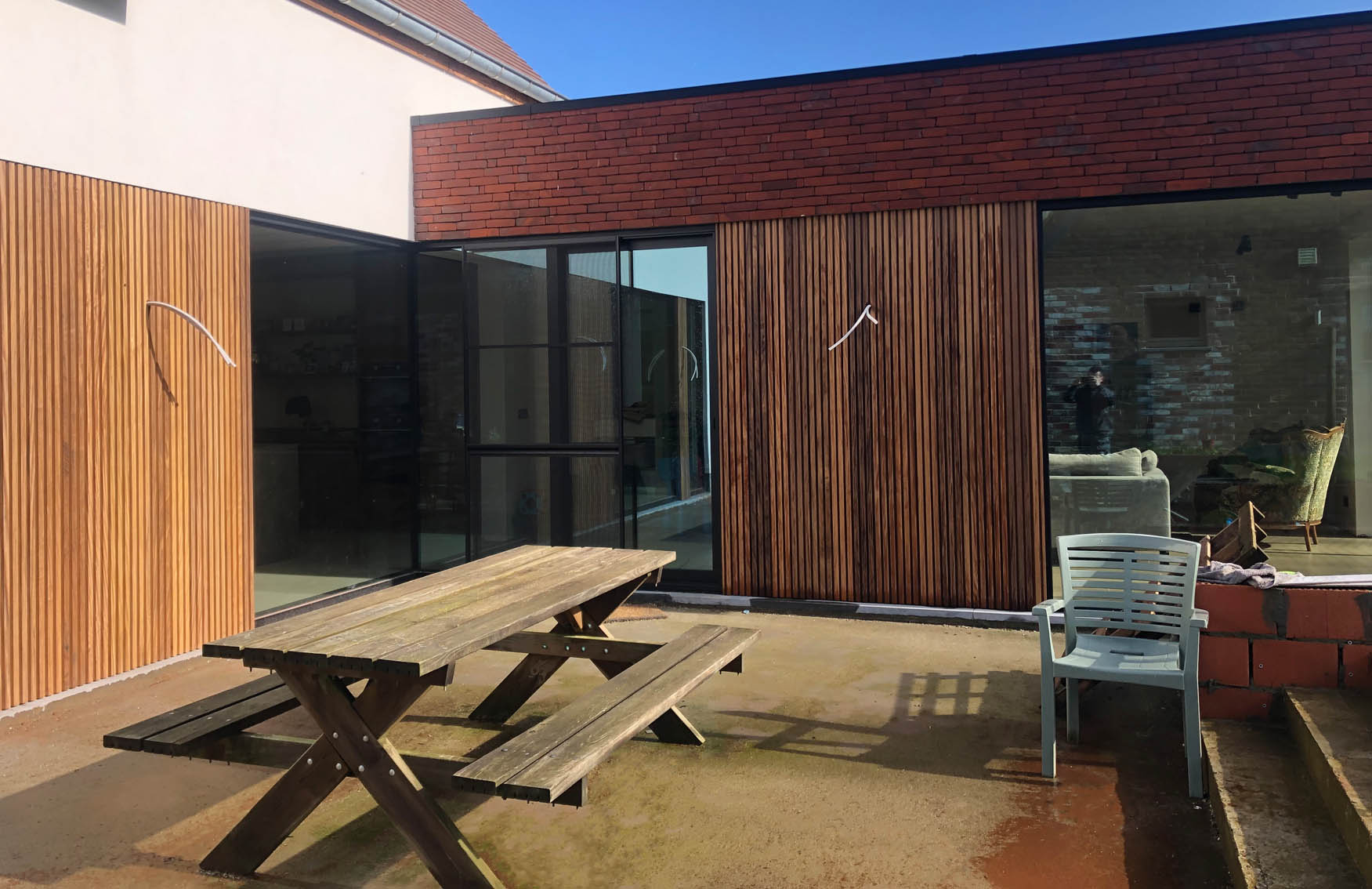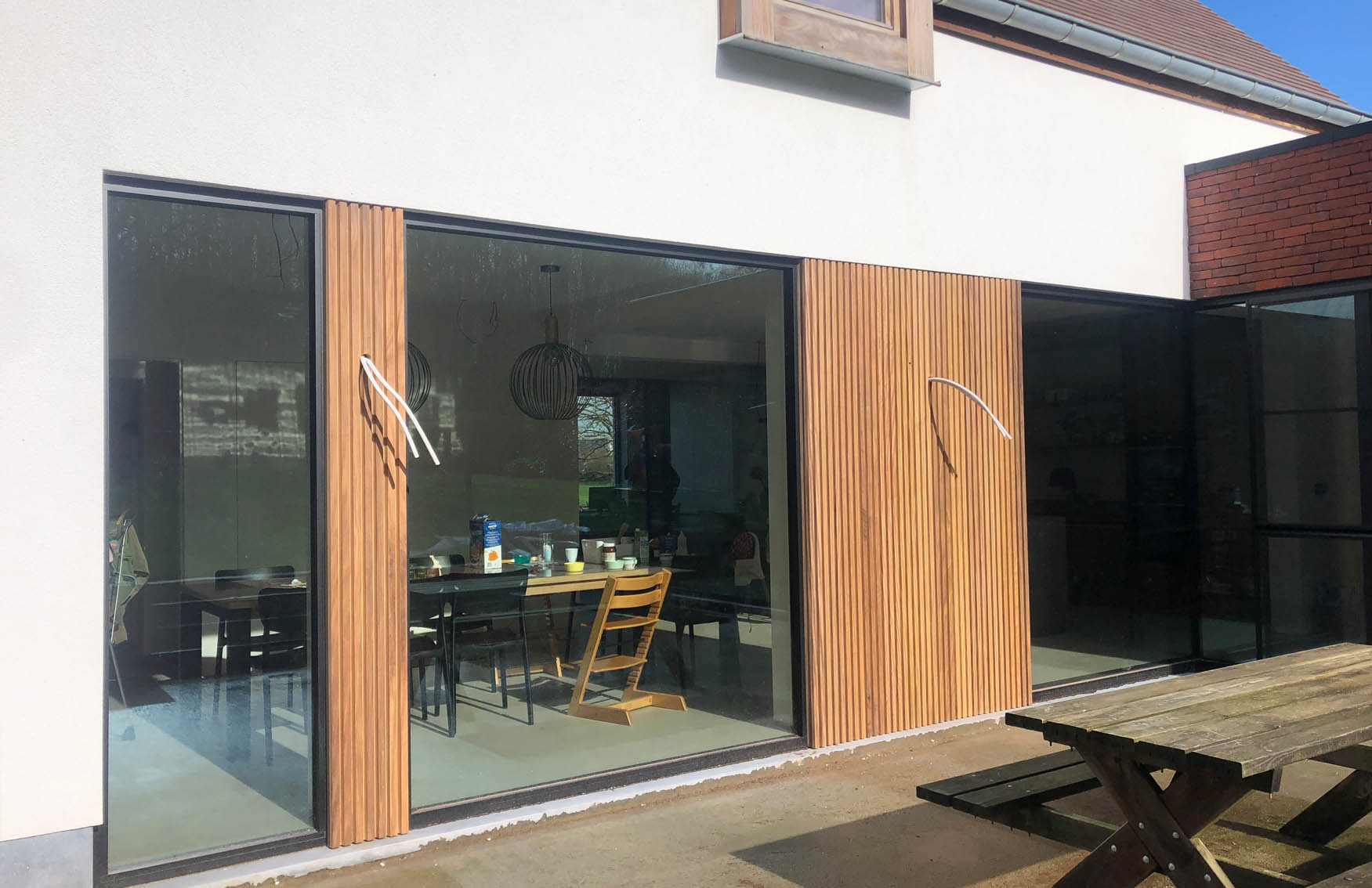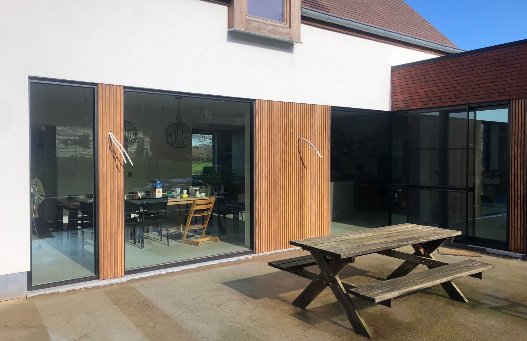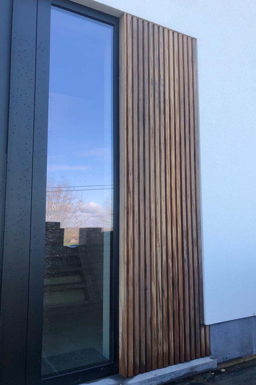 Voor dit project in Wortegem verzorgde GLA Projecten de afrormosia gevelbekleding.
